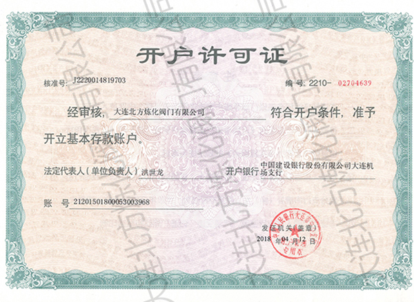 大連總公司開戶許可證